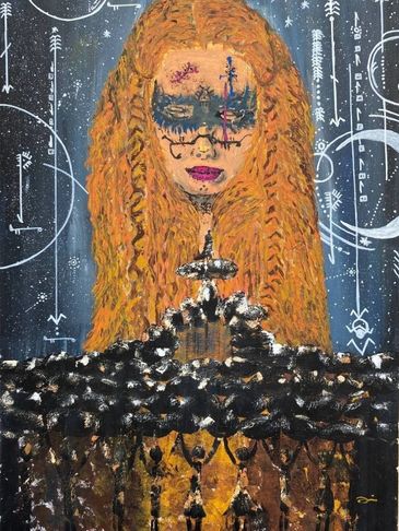 Mağara Kitabesi'nde geçen "Dudaklarımda dağlanmış binlerce söz var. Hepsi gözlerin. Gözlerin, kalbimdeki mühür. Gözlerin kâinatın arş kapısı; sonsuz, sisli, bulutsu ve bir damlanın son yeri. Avuçların kaderin çizimi; hayat ve ölümün ceng alanı. Parmak uçlarında peri tozu; masalsı, efsunlu bir ormanın dokunuşu." cümlesinin çizimidir.