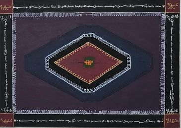 Mağara Kitabesi'nin "Bu mektup tütsülü ormanlarda yazılmıştır. Ve her harfi yedi maden üzerine yedi ayrı hat ile ayrı yedi zamana ve ayrıca yedi vadiden yazılmıştır." Cümlesinin çizimidir.